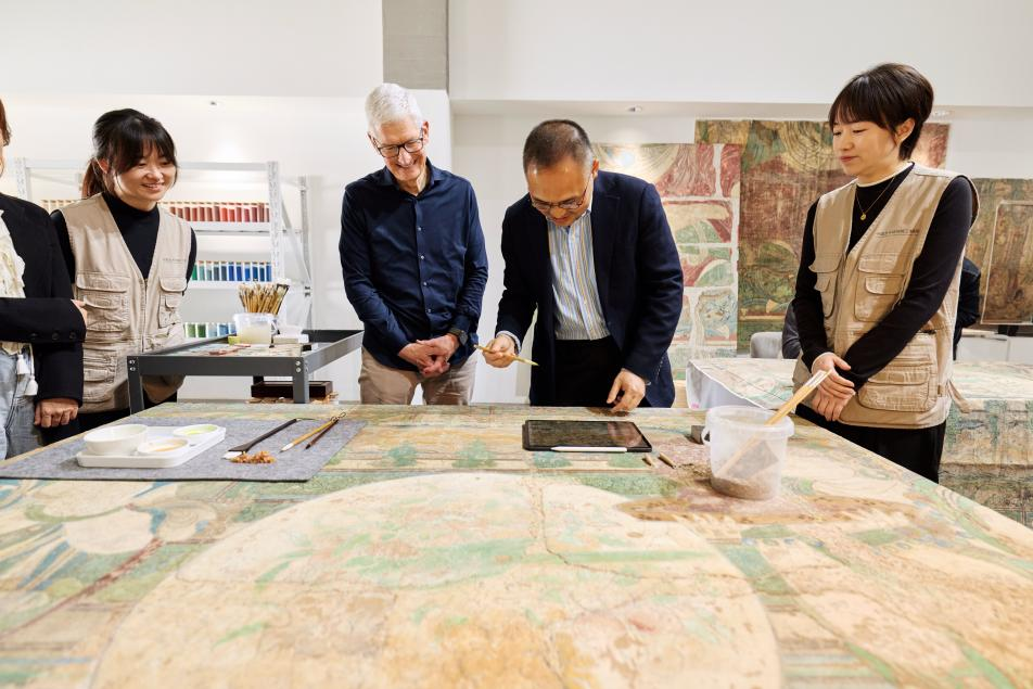 Изпълнителният директор на Apple Тим Кук участва в изложба на документална фотография в Пекин в събота, след като изгледа трейлъра на документалния филм В търсене на Изгубени стенописи.