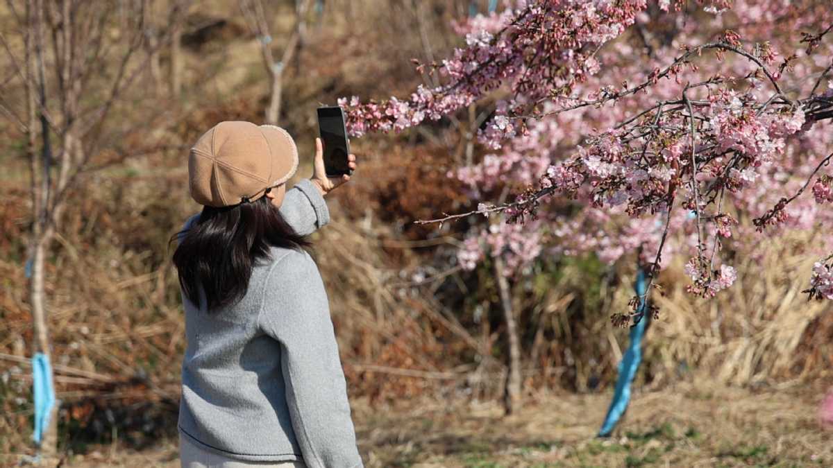 В централната китайска провинция Хунан тълпи от посетители бяха привлечени от планината Тайфу в окръг Линли, град Чангде, където цъфналите череши, които обикновено се виждат през пролетта, са разцъфнали в необичаен зимен вид.