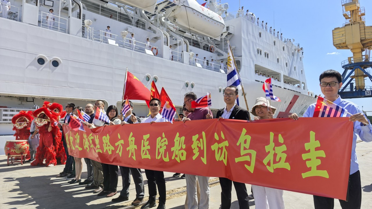 The PLA Военноморският болничен кораб Silk Road Ark пристигна в уругвайското пристанище Монтевидео миналия вторник за четиридневна техническа спирка. Посещението в пристанището, както съобщава китайската държавна информационна агенция Синхуаотбеляза първото посещение на китайски военноморски кораб в Уругвай – който се намира между двете най-големи икономики на Южна Америка, Бразилия и Аржентина.