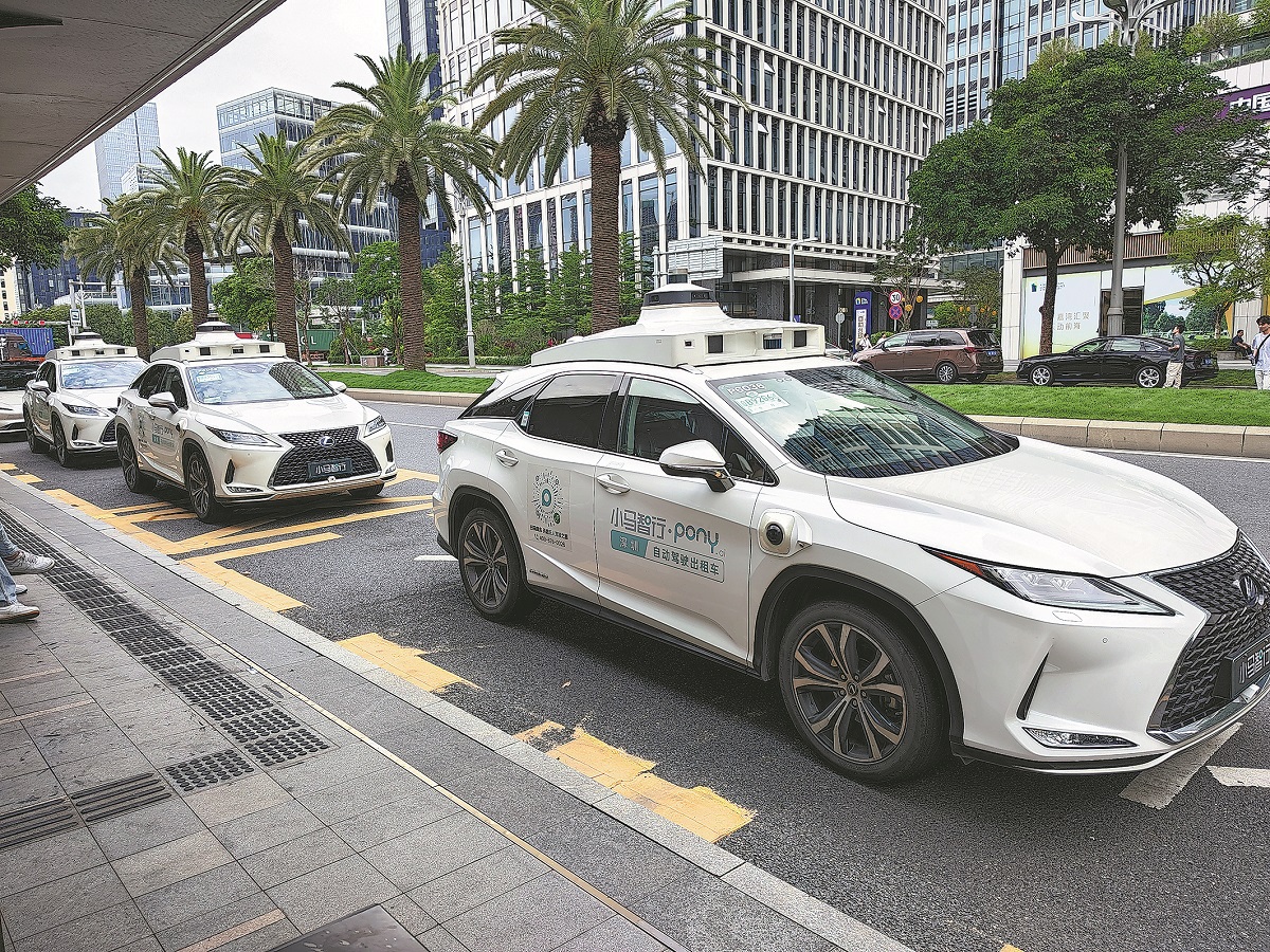 Robotaxis, собственост на автономна шофьорска компания Pony.ai оперира в Шенжен, провинция Гуандун, през май. [Photo provided to China Daily]