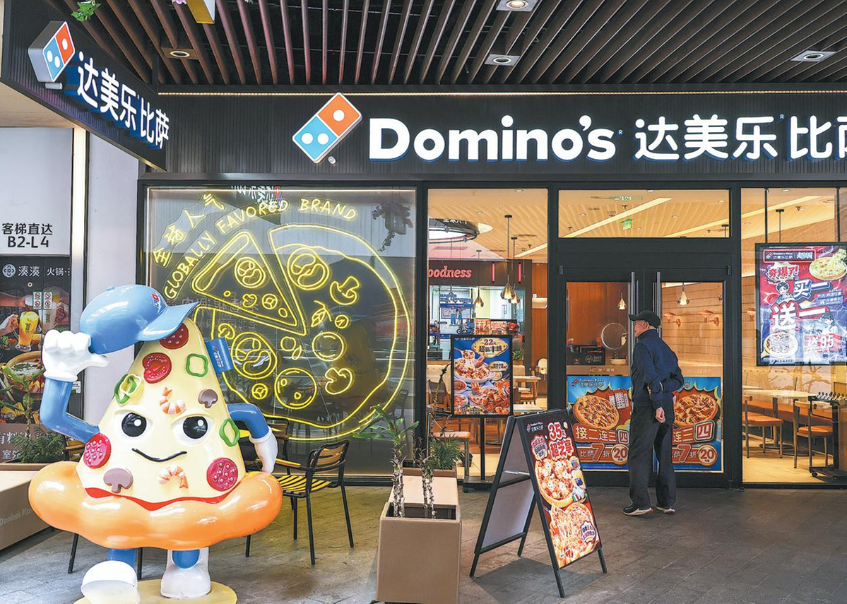 Магазин Domino’s Pizza работи в търговски център в Шанхай на 8 април. CHINA DAILY