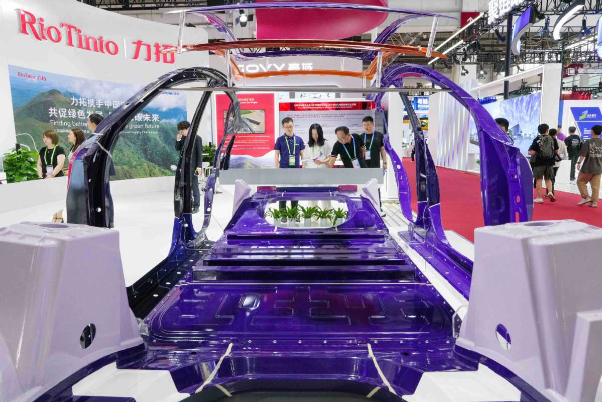 Посетителите се събират на щанда на Rio Tinto по време на изложение в Пекин на 19 юли. JU HUANZONG/XINHUA