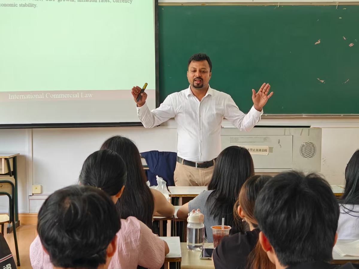 Мохамед Саийедул Ислям изнася лекция на основните студенти по английски език в Школата за чужбина (училище по чужди езици) в университета Санминг. [Photo by Zhou Zhihong/for chinadaily.com.cn]
