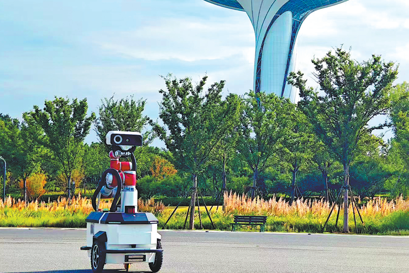 Интелигентен робот от Youibot Robotics извършва проверка в парк в Хефей, провинция Анхуи. Китай ежедневно