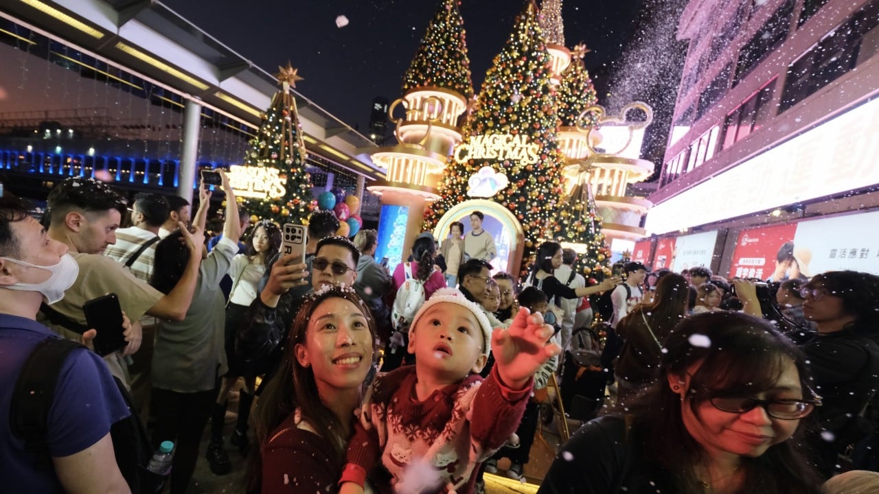 Жителите на Хонконг са на тълпи, за да изпитат празнични емоции в навечерието на Коледа, докато повече от 330 000 жители са напуснали града за празниците.