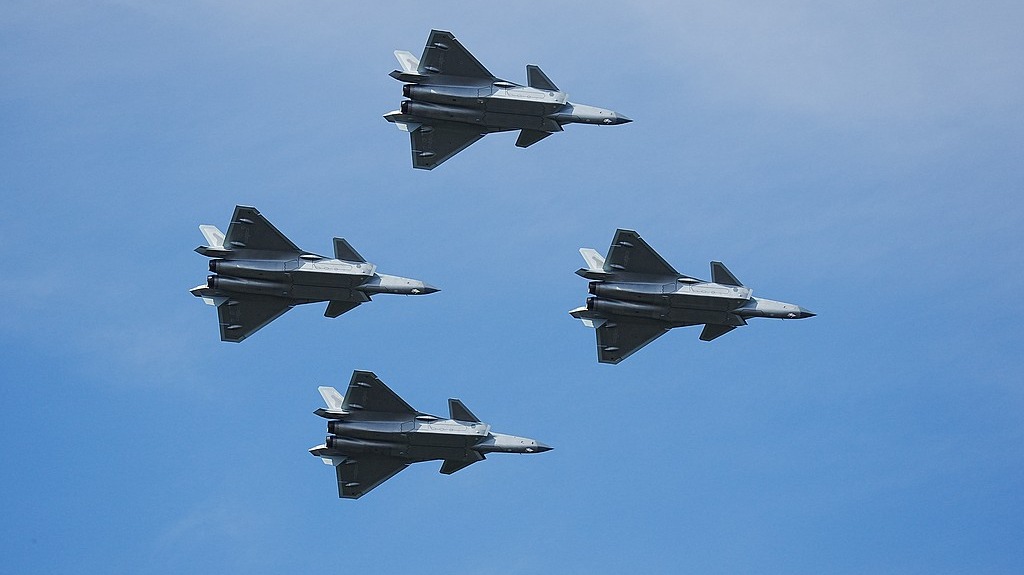 Най-добрият изтребител на Китай J-20 провежда формиране и тактически маневри на церемонията по откриването на откритата дейност през 2025 г. на военновъздушните сили на PLA в Чанчун, провинция Джилин, в петък.