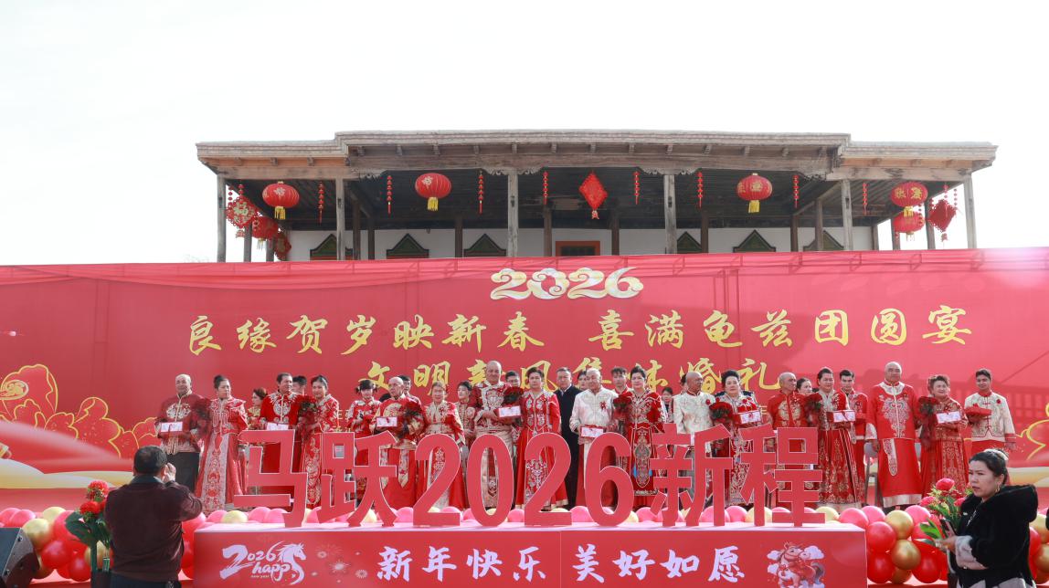 Колективна сватба в китайски стил се провежда в Кука, Синдзян-Уйгурски автономен регион, по време на празника Пролетен празник. [Photo by Li Yinqiong/For chinadaily.com.cn]
