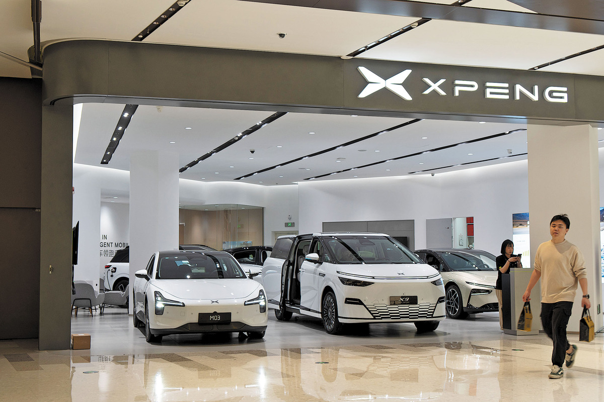 Моделите са изложени в магазин на Xpeng в търговски център в Шанхай през април. Wang Gang/за China Daily