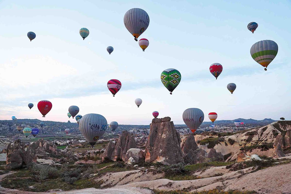 Кападокия, център на балониране с горещ въздух в Невсехир, Туркие, е домакин на милиони посетители годишно. Behcet Alkan/Anadolu/Getty изображения